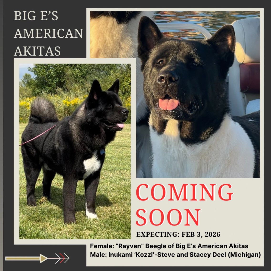 Email: beeglesamericanakitas@gmail.com Text: (618)250-9009 or (330)420-5563